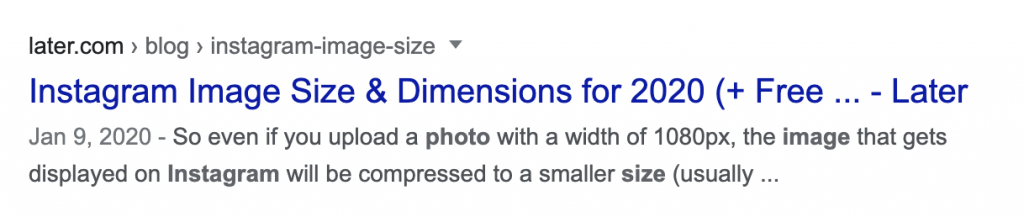With this Instagram Image Size guide, Instagram scheduling software Later.com secured a top organic position, no doubt putting them on the radar of many ‘grammers.