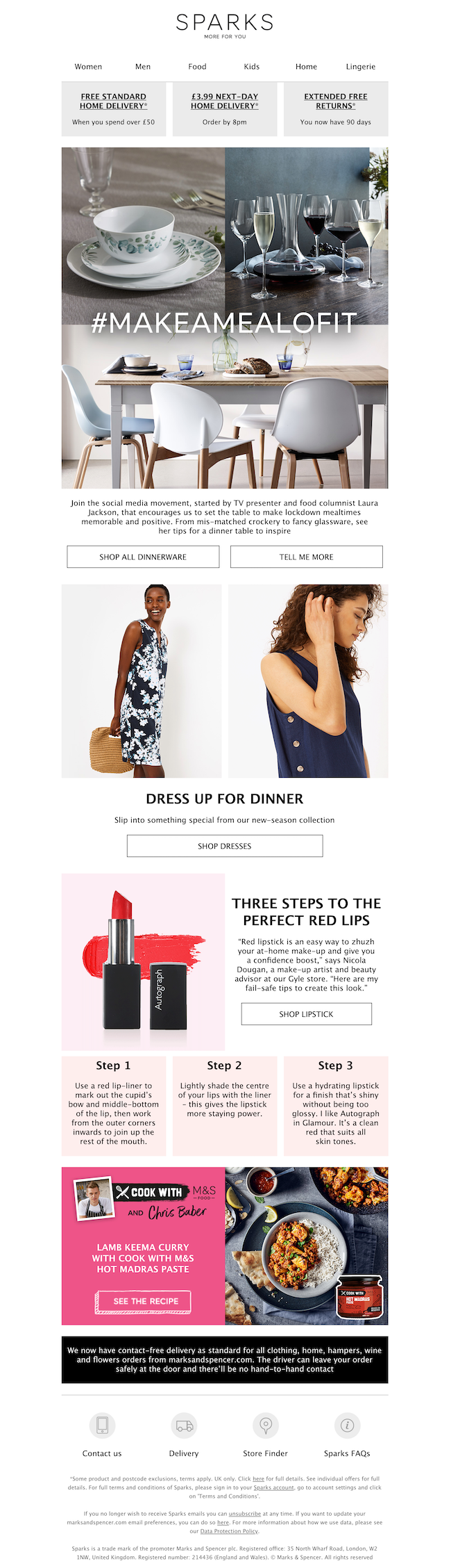 It was from M&S with a useful and warm suggestion for changing things up a bit. The subject line: Let’s make dinner special tonight – How to elevate your everyday dining.